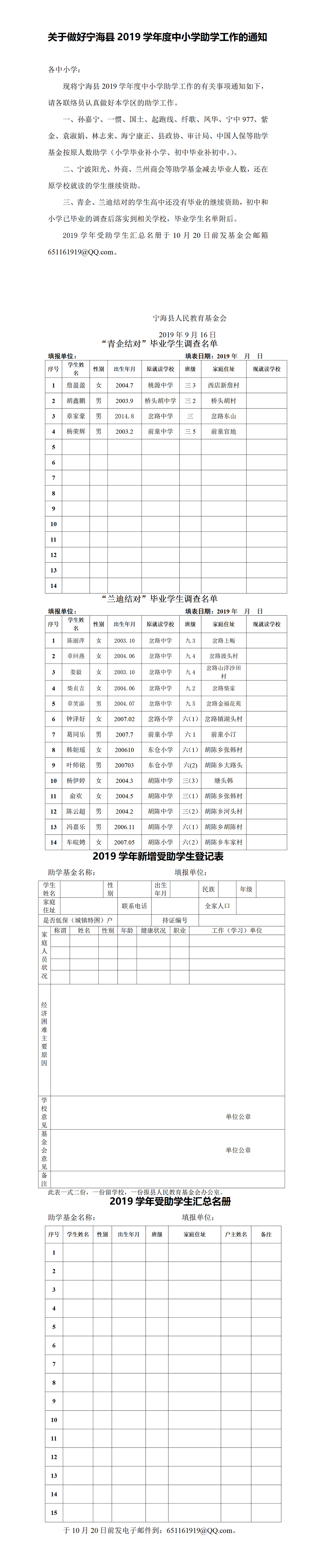 关于公布宁海县教育系统助学工作联络员(志愿者)名单的通知